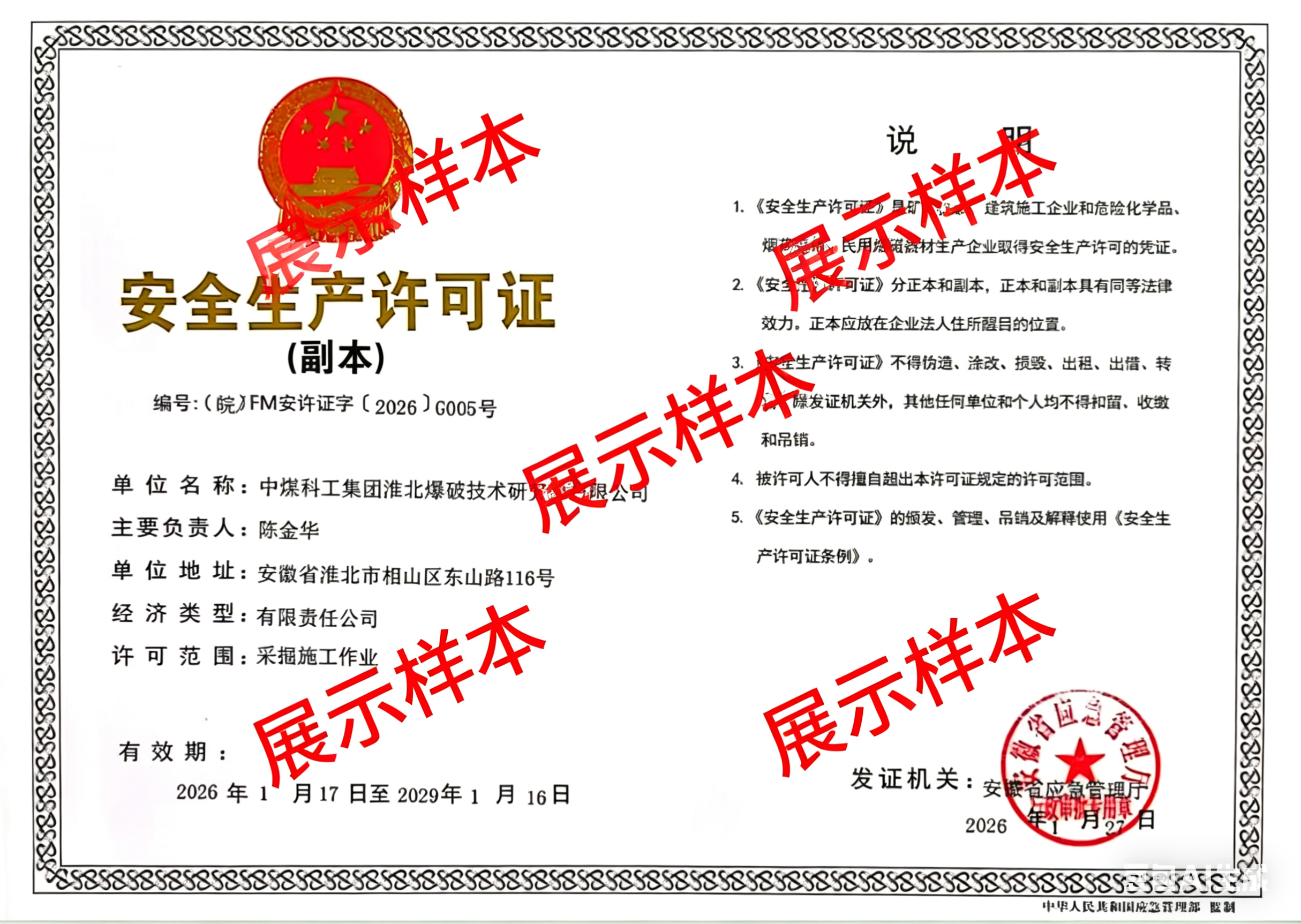 爆破作业单位许可证